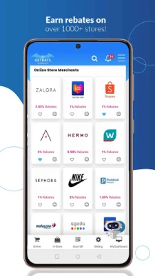 GETBATS is a rebate platform for its members to gain instant cash rebates when shopping online and offline. Each time a transaction is made via GETBATS, the shopper gets a percentage of that amount back as a rebate. The rebates earned can be withdrawn as cash via registered e-Wallets.