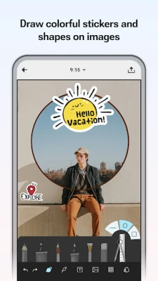 - Have all types of brushes, stickers, text feature to add some text to your sketch board.