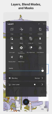 • Layers with a full complement of blend modes deliver the flexibility to build up and explore drawings and color
