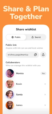 With our booking feature, anyone can select a gift from your wishlist and mark it as chosen, ensuring no duplicates. From big-ticket items on your shopping list to small registry requests, Wishes helps everyone stay organized.